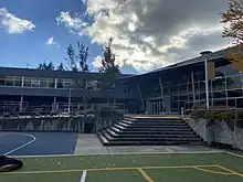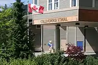 The Morven campus is the oldest of Collingwood School. It is located at 70 Morven Drive in the British Properties residential area of West Vancouver,[2] and houses Grades 8 and 9 of the Middle School and Grades 10-12 of the Senior School. The buildings previously made up Glenmore Elementary School, which was closed in 1982 along with several other schools in West Vancouver. Parents, students and teachers protested the closure of Glenmore, but were unsuccessful in keeping the school open in the face of declining enrollment and a reduced education budget.[3]