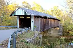 The bridge was constructed in 1877 and is one of 13 that remain of more than 400 covered bridges in Kentucky. The construction architecture is Burr truss consisting of multiple king-posts with panel posts generally spaced 10 feet apart.[2]