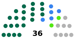 Seats1 mayor and 36 councillors