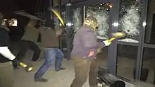 • Also in July 2016, thirty masked men broke into the Vinadeis company offices in Maureilhan, and attacked the office equipment inside with crowbars and hammers, while others set fire to tyres inside.[16] They also tried to empty the wine vats, but found them already empty.[16]