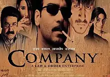 Company is a 2002 Indian Hindi-language gangster film directed by Ram Gopal Varma and written by Jaideep Sahni. The film stars Mohanlal, Ajay Devgn, Vivek Oberoi, Manisha Koirala, Antara Mali and Seema Biswas. It is the second film in the Indian Gangster trilogy, and a sequel to Satya (1998). Company follows Chandu, a henchman of a gangster named Malik, with whom he forms a rapport that eventually falls apart after tension arises between them.