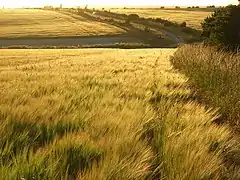 Fields of barley with narrow roadside hedgerows cover a large portion of Compton.