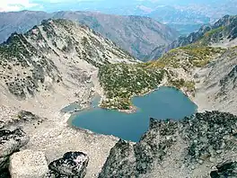 Coney Lake is a small alpine lake located in the Enchantments region of the Alpine Lakes Wilderness in Chelan County, Washington. Coney Lake sits in a bowl formed by a rocky cliff bifurcation of the north skirt of Cannon Mountain that connects to Elf Ridge Peak. Coney Lake has an outflow that is a tributary of Rat Creek, a short distance north-east along Dragon Teeth Peaks.[2] Shield Lake is situated over the opposite side over Elf Ridge.