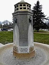 The fountain was commissioned in 1915 by the Winnie Davis Chapter[1] of United Daughters of the Confederacy.[2] The project was approved by the City of Helena Council, through its "Special Committee on the Great Northern Park" (prior name of Hill Park), as reported verbally May 3, 1915 by Alderman Riddell.[3] It was designed by architect George H. Carsley, and built of Montana granite.[2] Its dedication was on September 5, 1916: "The speaker lauded the present-day American spirit, a spirit of union with no feeling between the old north and south, which caused such bitterness and sorrow years ago. Both sides are now engaged in building up a better country to live in, making their homes more comfortable, their cities more beautiful." "...I present this fountain to the city of Helena as a token of our esteem toward our new home.”[4]