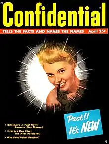 - ↑ Scott, Henry E. (2010). Shocking True Story: The Rise and Fall of Confidential, "America's Most Scandalous Scandal Magazine" (1st reprint ed.). Pantheon. p. 13.