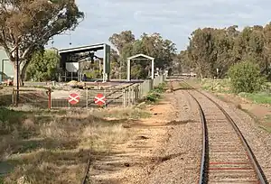 Congupna is a closed railway station on the Goulburn Valley railway line, in the township of Congupna, just north of Shepparton, Victoria, Australia. The station opened as Congupna Road at the same time as the railway from Shepparton to Numurkah on 1 September 1881, and was renamed Congupna in February 1968.[1]