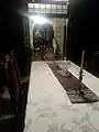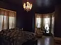 The first parlor, also known as the "blue room" or "Music room" features blue wallpaper inside of decorative wall moldings and is the scene of most seasonal celebrations. During the Christmas season the largest tree is placed in the bay window of this room. It houses the grand piano and Victrola, among other instruments.