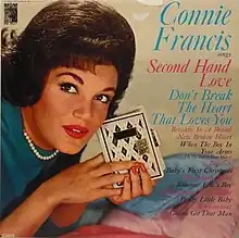 Connie Francis sings "Second Hand Love" (also known as Connie Francis Sings) is a 1962 studio album by the American entertainer Connie Francis. It peaked at number 111 on the Billboard Top LPs chart. "Together" (1961) and "Don't Break the Heart That Loves You" (1962) both peaked at number one on the Easy Listening chart.