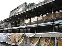 This site of conservation work on the Via dell'Abbondanza (Street of Abundance) is part of a larger project by the Soprintendenza Archaeologica di Pompeii to restore the facades and frescoes of many buildings on the street.