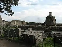 Fencing in the temple of Venus in Pompeii prevents vandalism of the site, as well as theft - many tourists obtain small artefacts from both cities as souvenirs.