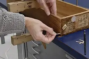 While a conservation technician supports the activities of the conservation department, they can also assist and collaborate with the functions of other departments, such as the collection management department within a museum. In this capacity, a technician may assist collections staff to create packing crates, take photographs to document an object or document evidence of any pests.[5]