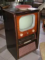 A console television is a type of CRT television most popular in, but not exclusive to, the United States and Canada. Console CRT televisions are distinguished from standard CRT televisions by their factory-built, non-removable, wooden cabinets and speakers, which form an integral part of the television's design.