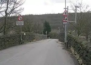 Looking south along Copley Lane, the bridge over the Sowerby Bridge to Halifax railway line, Copley railway station was east of this bridge.