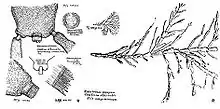 The thallus of C. officinalis is firmly attached generally to rock and grows in tufts to a length of 120mm. It has articulated pinnate branching with successive opposite lateral branches.[2] Each frond consists of cylindrical calcified stipes which show segments each a little longer than broad, rising from a crustose base like a string of beads becoming larger and more wedge-shaped higher up the stipe.[3][4] In colour the fronds are pinkish, it may bleach to white when exposed to sunlight.[5]