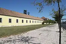 The building of the factory, created by an order of the Marquis of Pombal made in 1771, was completed in 1779, probably to the design of the architect Reinaldo Manuel dos Santos. However, rope making was believed to have been started at this location in 1775 in the open air. The building, which extends parallel to the River Tagus, was intended for the production of sisal ropes, cables, sails and other equipment for the Portuguese Navy and other ships. Architecturally it is practically devoid of decoration but it is still considered as an outstanding example of eighteenth century industrial architecture. Its location, next to the river, facilitated supply to vessels based in or visiting Lisbon.[1][2]
