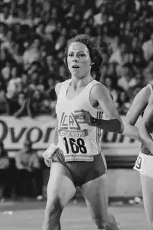Cornelia Bürki (born 3 October 1953) is a South African-born retired long-distance runner who represented Switzerland in three consecutive Olympic Games,[1] starting in 1980, with her best result being fifth in the 1984 3000 metres final. She is a 47-time Swiss national outdoor champion, which includes a fifteen-year undefeated streak in cross country and fifteen consecutive titles over 1500 metres, from 1975 to 1989.[2] She was voted the Swiss Sports Personality of the Year in 1978.[3] That year, she finished fifth at the 1978 IAAF World Cross Country Championships. She was fourth in the 1500m and 3000m finals at the 1987 World Championships.