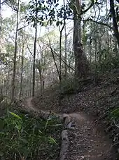 A protected nature conservation area was created by the local government council from land purchased between 1999 and 2010. Located in the north-west of the suburb, the 196-hectare (480-acre) nature refuge consists of the former Cornubia Forest Park to the south and land known as the Cornubia Escarpment in the north. It is managed as part of Australia’s National Reserve System with objectives that include both conservation of flora and fauna, and recreation such as bushwalking and mountain bike riding. The refuge is also managed under a Koala Nature Refuge Agreement with the state government. The tall open forest ecosystem of blackbutt (Eucalyptus pilularis) and the brown thornbill (Acanthiza pusilla) in the area are described as endangered.[13]