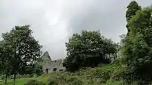 Inchiquin Castle is located just outside the town, on the north side of Lake Inchiquin. It was possibly begun by Teige-an-Chomhaid O'Brien (d. 1466). In 1542, it belonged to Turlough, son of Murrough, first Baron of Inchiquin. Murrough O'Brien, the fourth Baron, was in possession in 1580. His descendants, the Marquesses of Thomond, derived their title of Earl of Inchiquin from this estate. During the Nine Years' War, Hugh Roe O'Donnell raided Clare and Inchiquin Castle was attacked by one of his lieutenants, Maguire of Fermanagh. During the Confederate Wars Christopher O'Brien, Murrough the Burner's brother, lived here. Murrough's son, Colonel John O'Brien, abandoned Inchiquin towards the end of the 17th century. By then it had deteriorated into a ruin. Today the castle remains a ruin surrounded by pastures. Part of the older castle tower is still extant as is a good portion of the later 17th-century banquet hall.[7]