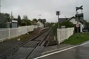 The single platform has a shelter, a bench and some bike racks. There is step-free access to a small car park.[7] As there are no facilities to purchase tickets, passengers must buy one in advance, or from the guard on the train.