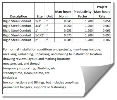 The labor requirements are often the most variable and are a primary focus of construction cost estimators. The labor hours required to construct each installation item are calculated by using a man-hour rate times the take-off quantity (a similar method is to divide the take-off quantity by the production rate). Many estimators use a man-hour norm reference for standard man-hours and apply an adjustment factor for project or task conditions, location, methods, equipment, labor skill, etc. to adjust for the anticipated effect on labor.