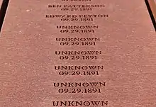 Monument at the National Memorial for Peace and Justice memorializing the Black individuals lynched following the strike.