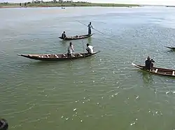 Water transportation is an important means of communication in Bangladesh, a floodplain with approximately 405 rivers[1] and numerous oxbow lakes (locally known as haor). Traditional country boats are still popular and they provide low cost convenient transport in this extensive inland waterways. Approximately 150 types of boats still populate the floodplain, and they vary in design, size and construction materials.[2] They would be either of Bainkata type or of flat bottom type. A bainkata type boat would have a golui fore and a spoon shaped hull whereas a flat bottom type would have neither.