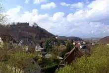 Frederik's sons Diederick I of Isenberg, (1215–1301) and Frederik junior who died as a teenager, were brought up at the ducal court by their uncle Hendrik. At a young age they fought with the support of knights of their uncle to reclaim lost property. Diederick built a wooden fort and nearby a stone castle as a support point on the Schleipenberg (near Hagen Germany), the castle Hohenlimburg named after his mother's family. In 1241–1242 he built a second castle New Isenberg opposite the town of Werden on the river Ruhr. On May 1, 1243, he was formally recognized as count of part of his father's recaptured territory. Until then he call himself 'Van Isenberg' later on Diederick I of Limburg (1215–1301). Diederick's son, Johan died at the age of thirty and left two sons and one daughter. [17] His younger brother Everhard continued 30 years more, the struggle together with his father for the conquest of former Isenberger family property.