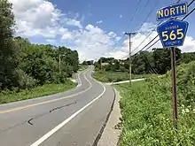 CR 565 begins at an intersection with US 206 and the northern terminus of Route 15 in Frankford Township, heading northeast on two-lane undivided Ross Corner-Sussex Road. The road runs through hilly areas of woods and farms with a few homes, continuing into Wantage Township. Here, the route intersects CR 637 before reaching a junction with CR 628. At this point, CR 565 turns southeast onto Compton Road while CR 628 continues northeast on Ross Corner-Sussex Road. The route turns northeast onto Lewisburg Road and reaches an intersection with Route 23. CR 565 turns east to form a concurrency with Route 23 on a three-lane road with a center left-turn lane, passing a few businesses. Upon splitting from Route 23, CR 565 heads east on two-lane undivided Glenwood Road. The road makes a turn northeast into Vernon Township and intersects CR 667 and CR 641. In Vernon Township, CR 565 serves as a mountain pass between the summit of Pochuck Mountain and the ridge's lesser peak Glenwood Mountain. This stretch of roadway passes through areas of woods and residential neighborhoods and crosses the Appalachian Trail. The route reaches its northern terminus at CR 517 in the northern part of Vernon Township a short distance south of the New York border.[1][2]