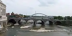 Court Street Bridge is a historic stone arch bridge located at Rochester in Monroe County, New York. It was designed by city engineer J. Y. McClintock, constructed in 1893, and spans the Genesee River. It has six shallow arches over the river and two arches over the Johnson and Seymour Raceway and Erie Canal. Shallow arch spans are 52 feet and rises vary from 13 to 20 feet.[2]