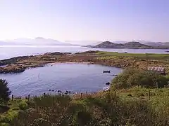 ![]() Natural harbour at crofting community of Cove near mouth of Loch Ewe. The view is south with the Letterewe hills on the horizon. | |