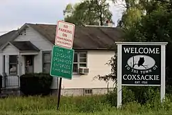 Coxsackie (/kʊkˈsæki/ kuuk-SAK-ee[3]) is a town in Greene County, New York, United States. The population in the 2020 census was 8,382, a decrease from the 2010 census.[2] The name of the town is said to be derived from a Native American term, but it has various translations ("owl's hoot" is locally common).[4]
