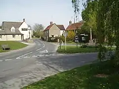 Uphill Farmhouse was built in the 17th century.[4][5] Crawley's chapel of Saint Peter was built in 1837 as a chapel of ease for the Church of England parish church at Hailey, Oxfordshire.[4] It has ceased to be used for worship and has been converted into a private house.[6] Crawley village is above a sharp bend on the Windrush. The present road bridge across the river is probably late 18th-century.[7] Crawley Mill on the Windrush was part of the Witney area's former blanket-making industry. It has a mill stream and was originally water-powered but was later converted to steam power. It is now an industrial estate.