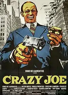 Crazy Joe is a 1974 crime film directed by Carlo Lizzani and produced by Dino De Laurentiis. The Italian-American co-production is a fictionalized retelling of the murder of Joseph "Crazy Joe" Gallo, a mobster who was gunned down on April 7, 1972, at a restaurant in Little Italy.[3] The screenplay by Lewis John Carlino is based on a series of articles by journalist Nicholas Gage. The film stars Peter Boyle in the title role, with Paula Prentiss, Fred Williamson, Rip Torn, Luther Adler, Henry Winkler and Eli Wallach.