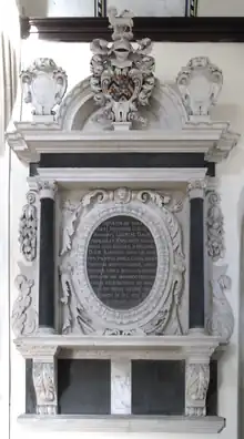 Mural monument to John Davie, 3rd Baronet (1660–1692) of Creedy. North wall of chancel, Sandford Church