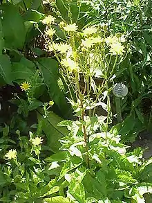 Crepis sibirica is a perennial herb up to 150 cm (5 feet) tall, spreading by means of large underground rhizomes. It produces a flat-topped array of several flower heads. Each head has many yellow ray florets but no disc florets. The species grows on mountain slopes and in forests and grasslands.[2]