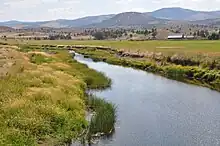 The Crooked River is a tributary, 125 miles (201 km) long, of the Deschutes River in the U.S. state of Oregon.[4] The river begins at the confluence of the South Fork Crooked River and Beaver Creek. Of the two tributaries, the South Fork Crooked River is the larger and is sometimes considered part of the Crooked River proper. A variant name of the South Fork Crooked River is simply "Crooked River".[1][3] The Deschutes River flows north into the Columbia River.