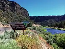 Some of the Crooked River's drainage basin lies within the Ochoco National Forest and the Crooked River National Grassland. A 17.8-mile (28.6 km) stretch of the river, from the national grassland boundary to Dry Creek, was classified as a recreational part of the National Wild and Scenic Rivers System in 1988.[13] Most of the North Fork Crooked River is also part of the wild and scenic system.[14]