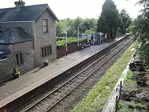 The station was built & opened by the Liverpool, Ormskirk and Preston Railway (later taken over by the Lancashire and Yorkshire Railway) along with the line in April 1849.[2] "Line" is the suitable word here, as along the way are clear signs of the former double track trunk route from Preston to Liverpool Exchange, which was severely rationalised (including the reduction to single line working) in 1970.