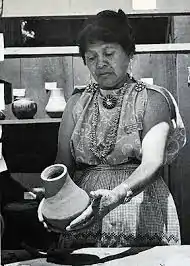 Crucita Gonzales Calabaza[1] (December 27, 1921 – May 3, 1999), also known as Blue Corn, was a Native American artist and potter from San Ildefonso Pueblo, New Mexico, in the United States. She became famous for reviving San Ildefonso polychrome wares and had a very long and productive career.[2][3][4]