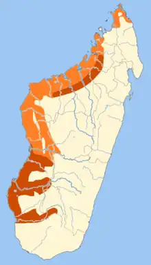 Cryptostegia madagascariensis is a species of flowering plant in the family Apocynaceae.[2] It is commonly known as purple rubber vine, is a woody-perennial vine that is native to western and northern Madagascar. It has also been introduced to several tropical and subtropical regions by man, including Puerto Rico and the Virgin Islands.[3] It is very similar to the rubber vine (C. grandiflora), which is also native to Madagascar.[4] In their area of overlap some hybrids have been observed, which are distinguishable by intermediate flower morphology. In the 1930s a hybrid was also developed for horticultural purposes.[3]