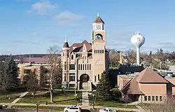 According to the United States Census Bureau, the city has a total area of 3.61 square miles (9.35 km2), of which 3.47 square miles (8.99 km2) is land and 0.14 square miles (0.36 km2) is water.[8] The city is very hilly and the castle-like county courthouse (built in 1890) sits on the highest point, overlooking the downtown business district.