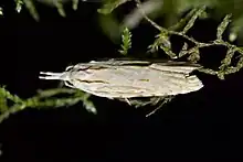 Adult specimens have been collected from December to March and in June and July using either light or malaise traps.[3] An adult of this species has also been observed on the wing in October.[8] At rest, the species holds its wings mostly around the body though partly overlapping.[3]