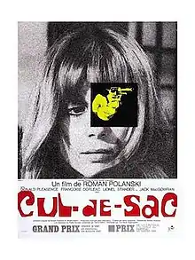 Cul-de-sac is a 1966 British black comedy psychological thriller film directed by Roman Polanski, written by Polanski and Gérard Brach, and starring Donald Pleasence, Françoise Dorléac, Lionel Stander, Jack MacGowran, Iain Quarrier, Geoffrey Sumner, Renée Houston, William Franklyn, Trevor Delaney, and Marie Kean. It also features Jacqueline Bisset (credited as Jackie Bisset) in a small role, in her second film appearance. Polanski's second English-language feature, it follows two injured American gangsters who take refuge in the remote island castle of a young British couple in the north of England, spurring a series of mind games and violent altercations.