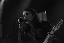 ![]() Madeline Follin and Brian Oblivion performing in 2014 | |