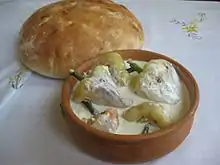 Kosovo Food and Drink[10] Grilled meat dishes are popular and a good bet. Many dishes use freshwater fish. Vegetarian choices are limited. Specialities: • Flija (layered pie with yogurt filling). • Raznjici (skewered meat). • Hajvar (paprika paste). • Qebab (charcoal-grilled minced meat). • Sarma or japrak (vine or cabbage leaves stuffed with meat and rice). • Pliskavica (meat patties of beef and lamb). National drinks: • Albanian wine, especially Velika Hocha. • Kafe Turke (Turkish coffee) • Rakija (spirit usually made from grapes). • Reçel (potent plum brandy).