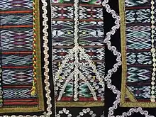 The traditional women's Tarnovo costume consisted of: a hairpiece – mostly white (in some cases with red patterns), a white shirt with red or red-green patterns around the sleeves, a black dress, a black apron with several alternating rows of patterns: green, yellow, red, slippers – silver or gilded, pendants. Men were most often in white shirts, with red cuts and trousers.