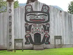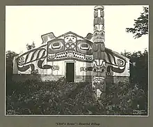 Home of a Tlingit chief with a totem pole outside, these poles would commemorate the life of the chief and his family