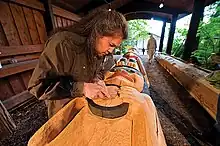 Tlingit Artist, Tommy Joseph, carves a totem pole for the Carnegie Museum of Natural History