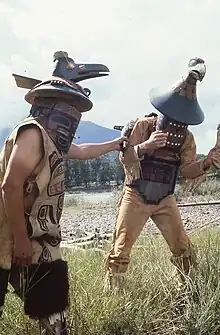 The Tlingit traditionally painted their faces with colors of white, black, and red which with traditional methods can remain on the body for months on end. These body paints protected the body from the elements in the winter seasons, guarding against snow blindness, while additionally being used in the summer seasons to ward off gnats and mosquitoes.[8] More complicated body-paints were created through the mixing of fungi, ash, roots, clays, and charcoal while for temporary purposes Tlingit would simply rely on charcoal. Black was commonly used as a marking of death, anger, sorrow, and war, and it was not uncommon for Tlingit to blacken the face with charcoal markings in the event of insult or conflict.