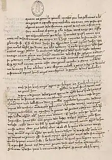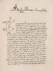 Curial was probably written in the period 1443–1448 or thereabouts.[2] Since it refers to the Hospitaller langue of Spain, it was probably completed before 1462, when that langue was divided between Aragon and Castile.[1] It is written in the Valencian dialect of Catalan, which was then the prestige dialect, since Alfonso the Magnanimous, king of Aragon, had made Valencia his chief residence prior to 1432. The author appears to have knowledge of Italian and Castilian.[3] The text was probably written in Italy.[4]